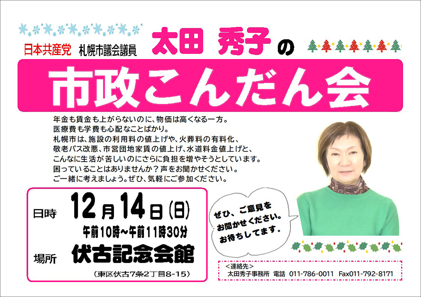 お問い合わせ: 011-786-0011(太田秀子事務所)