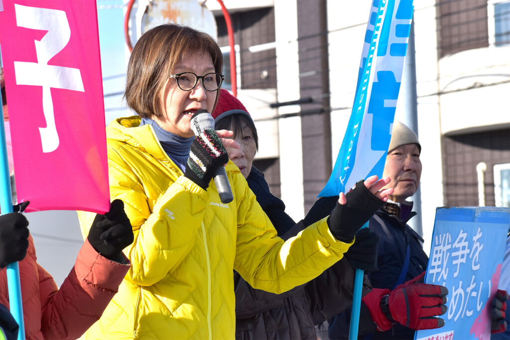 東日本大震災の後、復興のためのお金を所得税に2.1%上乗せした復興特別所得税があります。増税は苦しいけれど、福島のためなら、復興のためならと思った方も多かったと思います。復興は進んでいないのに、政府は2027年から2.1%の復興特別所得税の中から1%を防衛力強化の財源に転用すると決めました。とんでもありません。戦争にお金を使っている場合ではありません。軍事費ばかり増やすのではなくて、国民の命とくらしを守ることにこそお金を使うべきだと強く求めていきます。ご一緒に『地震大国に原発はいらない』の声を大きくあげましょう」と呼びかけました。