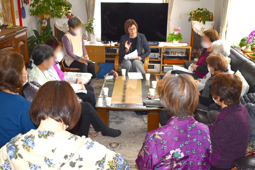 参加した方々からは、「マイナンバーカードを作っていない。保険証が心配」「今までは保険証が身分証明書になったが、今は写真付きの身分証明書がないと本人でも現金書留も受け取れない。仕方がなくマイナンバーカードを作った。本当に困る」「丘珠空港の滑走路延長で自衛隊が使う頻度が増えないかが心配」「飛行機の騒音がひどい」「雪が多くて冬は出歩けない。半年も家にこもるようになる。年寄りのことを考えてほしい」「ぜいたくを言うわけでなく、雪で病院にも行けない。タクシーも高い」など、次々と意見が出され、太田市議がひとつひとつに丁寧に答えました。